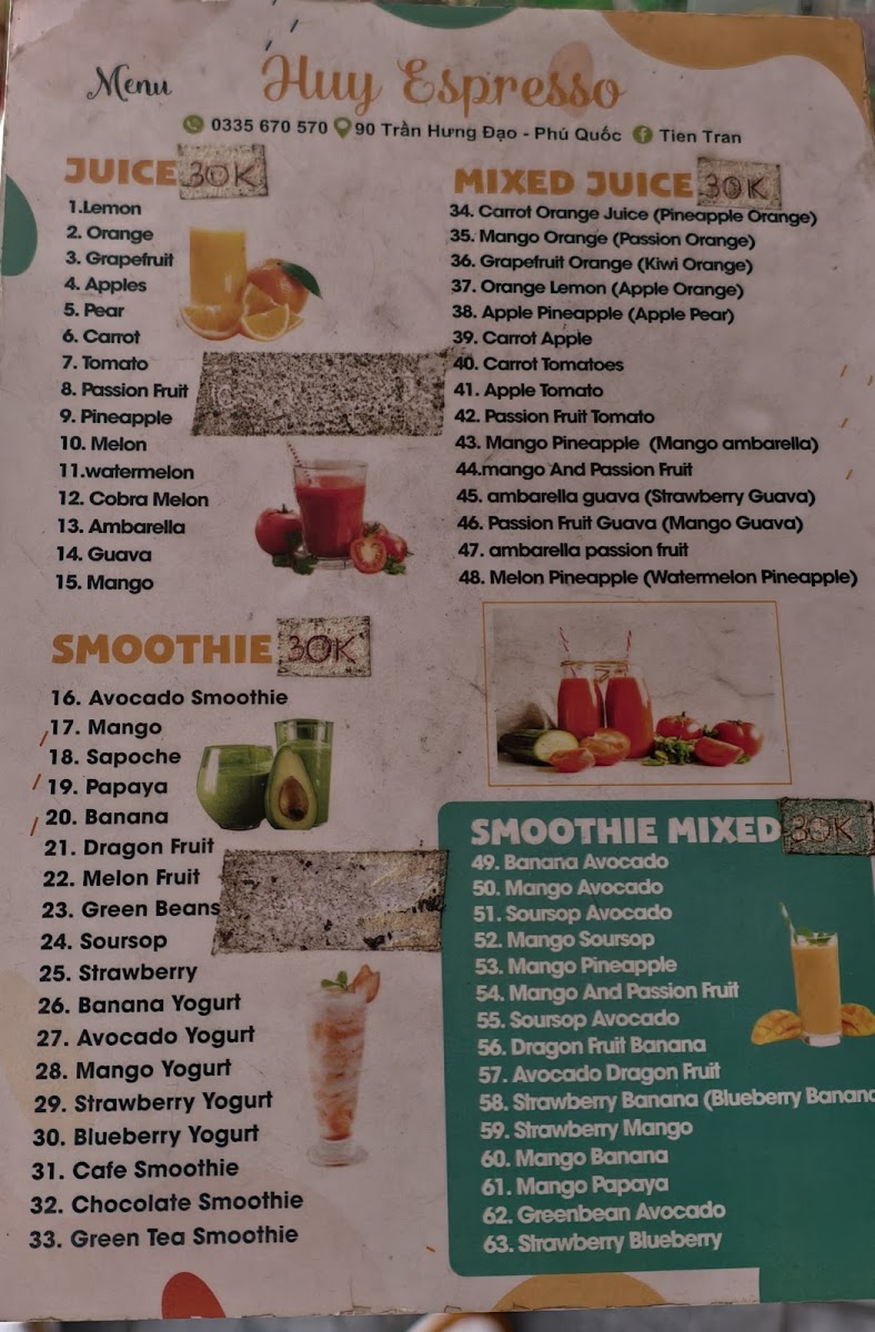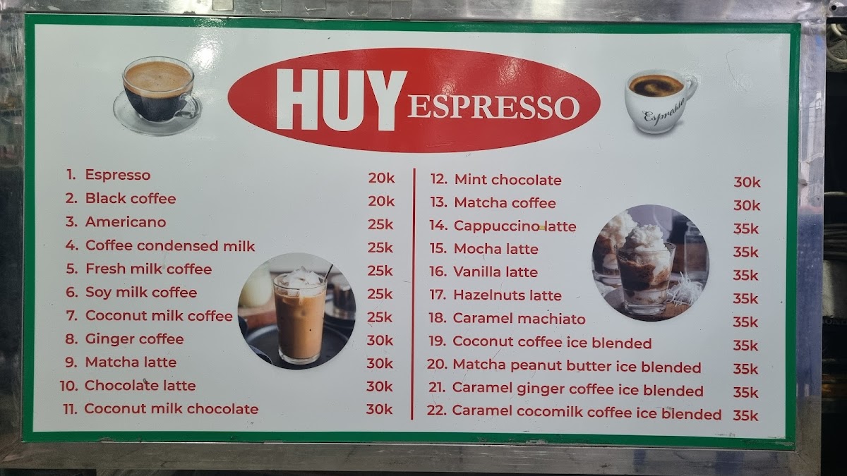 HUY ESPRESSO Menu
